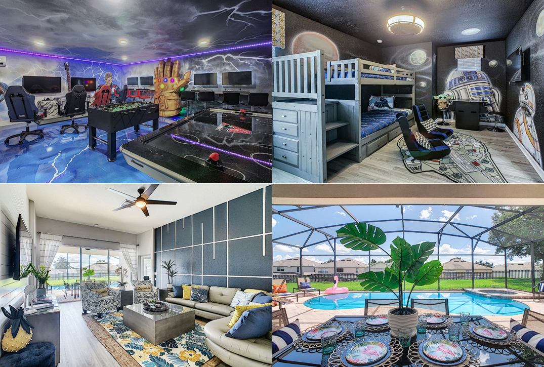 ARE YOU LOOKING for a totally renovated and professionally decorated vacation home with a truly unique game room? This is it . . . The home is beautiful. The Avengers themed game room is incredible. There's nothing like it, and it's loaded with fun. The heated saltwater pool and spa are private (heating is extra). The home also has a Harry Potter themed bedroom and a Star Wars themed bedroom. And, it's located in Windsor Hills Resort - the closest vacation home community to Disney World.